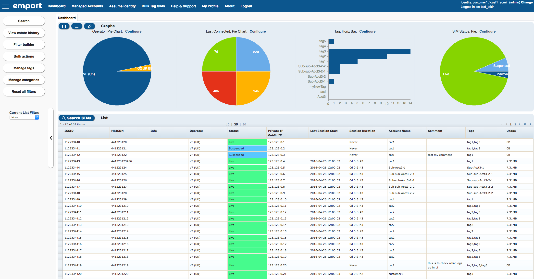 • Customers want control over the assets of their customers while empowering them for self management. They want a tiered account management function, where they can allocate SIMs with certain properties to their customers, and have access management services.